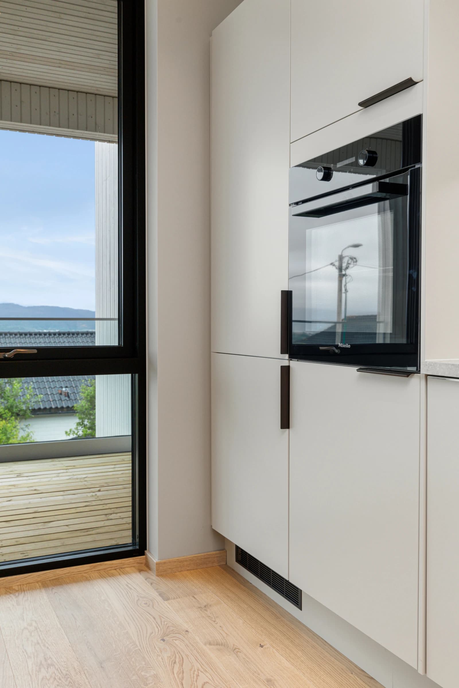 - 1-stavs eikeparkett av høy kvalitet levert på stue, kjøkken og soverom.