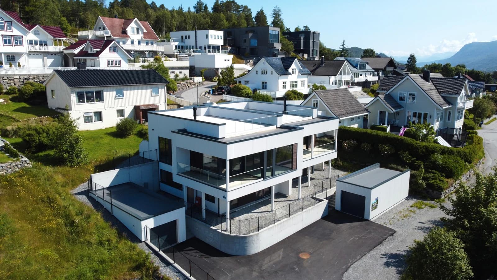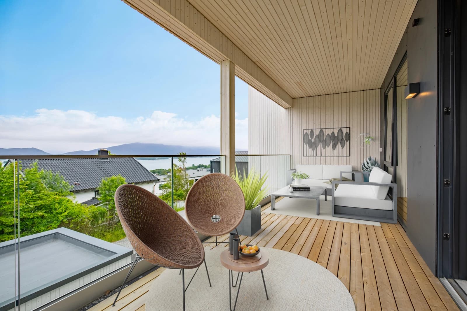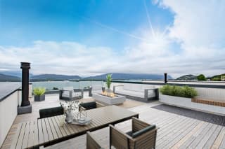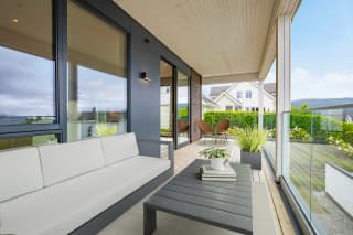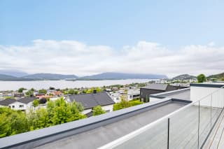 Solrik og romslig sørvendt veranda med moderne glassrekkverk, i tillegg til stor privat takterrasse på ca. 70m2 med fantastisk utsikt over Åsefjorden og Sunnmørsalpane. Det er også uteområde på bakkeplan, med mulighet for markterrasse. Her kan sommeren nytes med plass til alle!