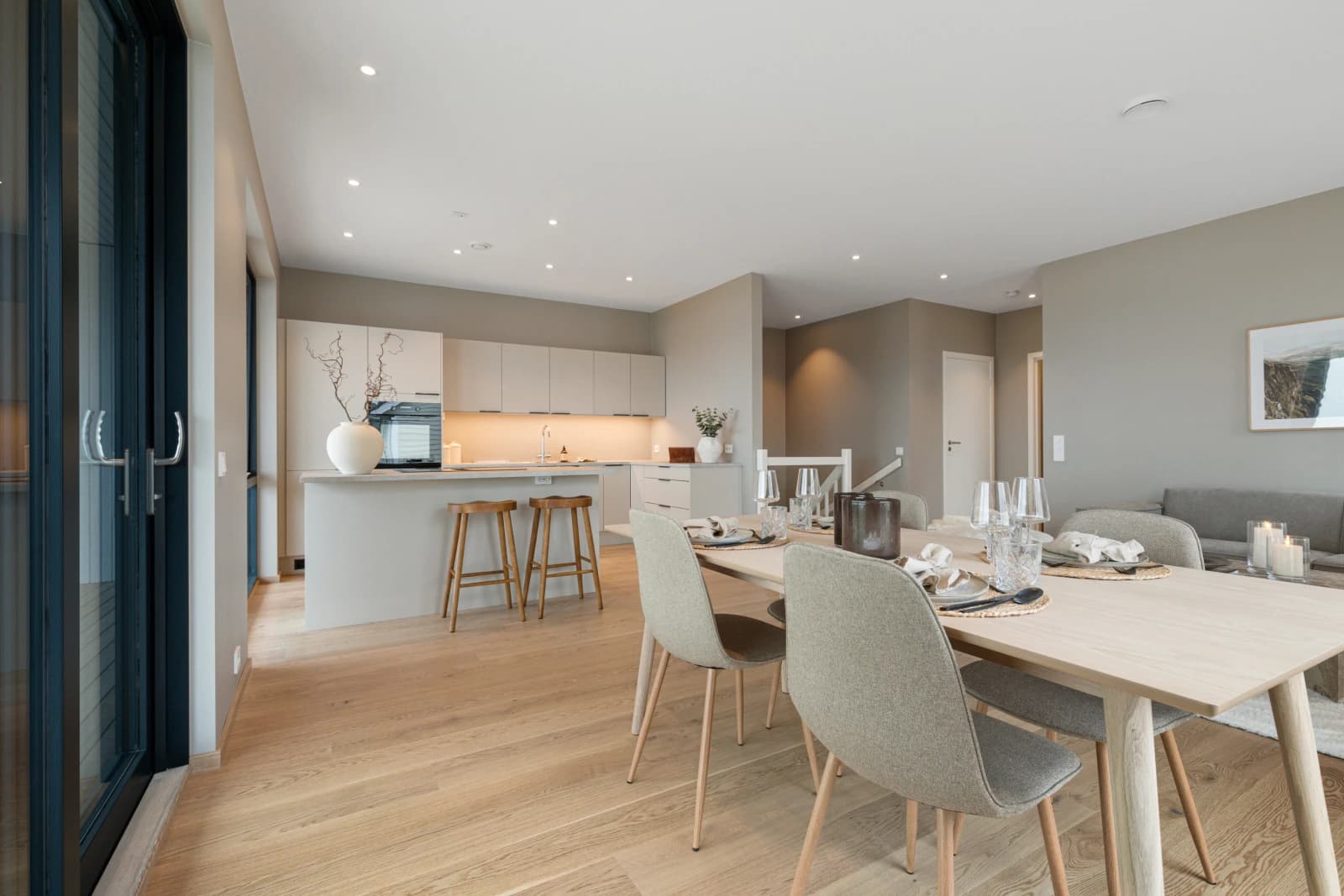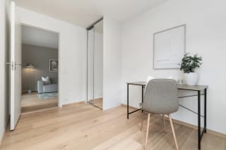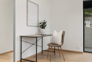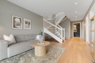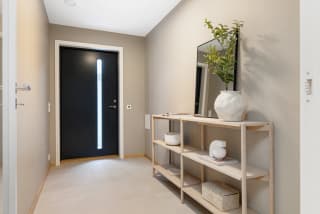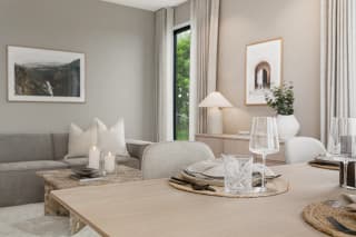 Boligen på 138m2 (avbildet) er allerede ferdigstilt og innflyttingsklar. Den er gjennomført med høy standard, nøye utvalgte materialer og delikate, lyse farger. Om valget skulle falle på denne, kan du i tillegg overta vår møbelpakke etter avtale med selger.