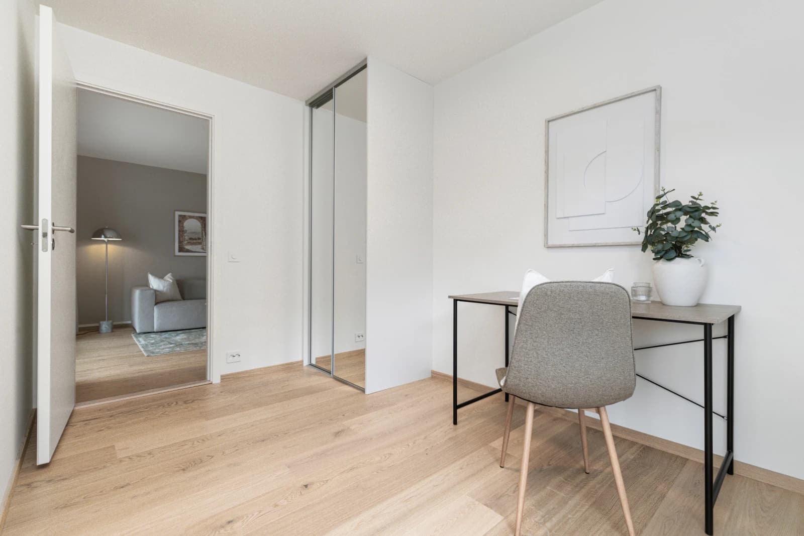- Malte vegger og tak i valgfrie farger, der soverom og stue i tillegg kan leveres med kontrastvegg.