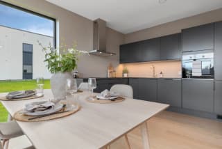Våre boliger blir levert med nøkkelferdig standard. Det vil si at alt av arbeid med legging av parkett, maling og flisarbeid blir utført og er inkludert i prisen for boligen. Du får da en innflyttingsklar bolig med ekstra høy standard der du flytter rett inn i den ferdige boligen. Velger du en av våre eksklusive visningsboliger, kan du i tillegg overta vår møbelpakke etter avtale med selger.