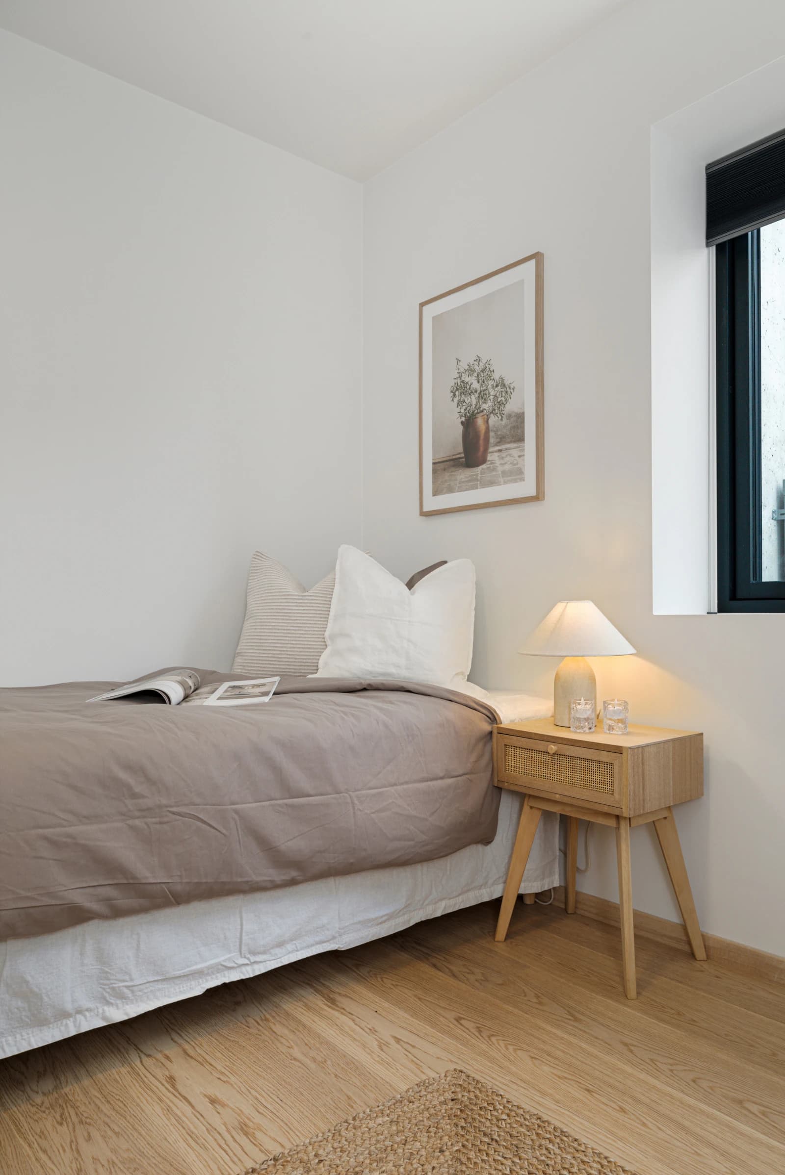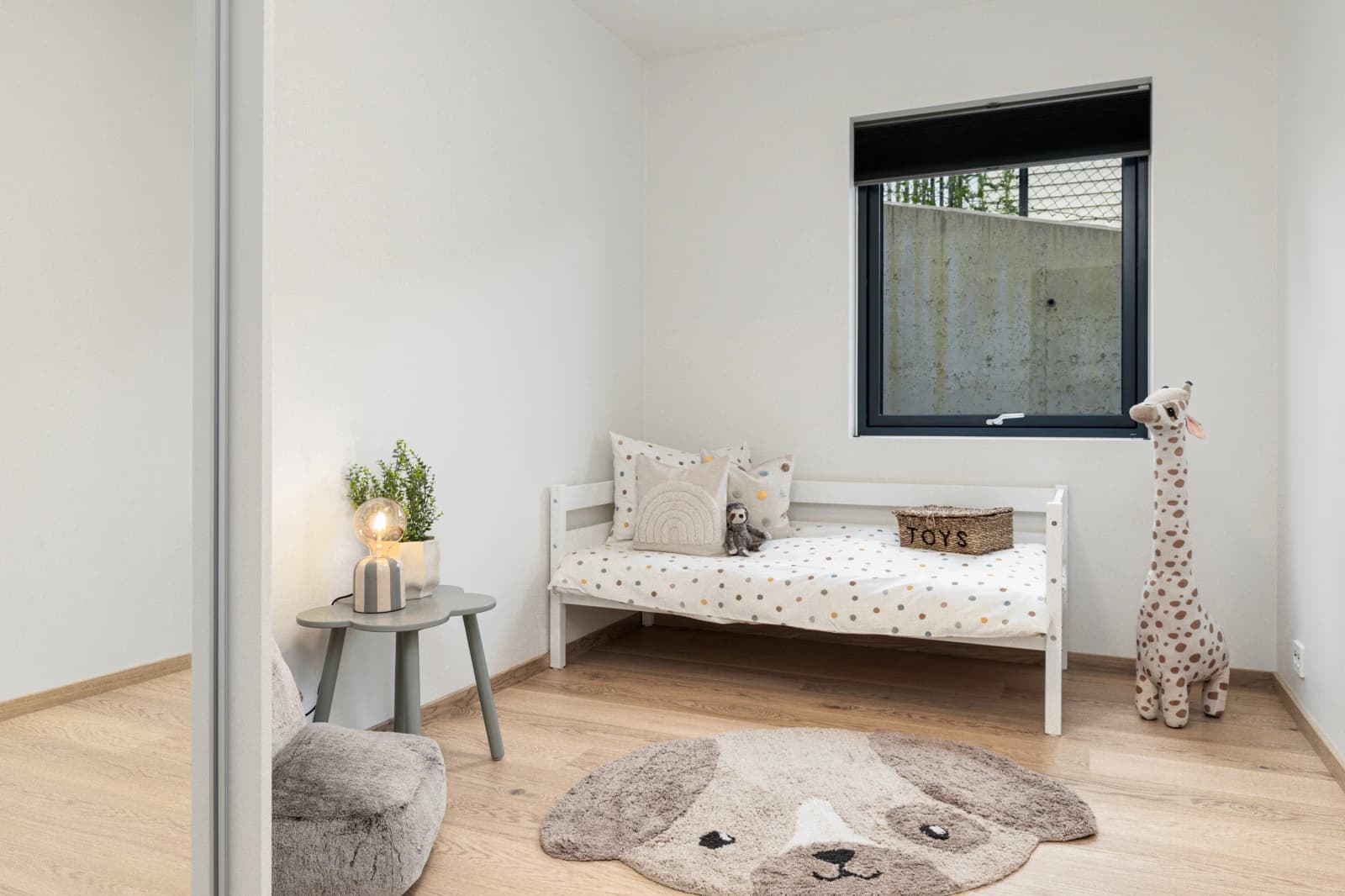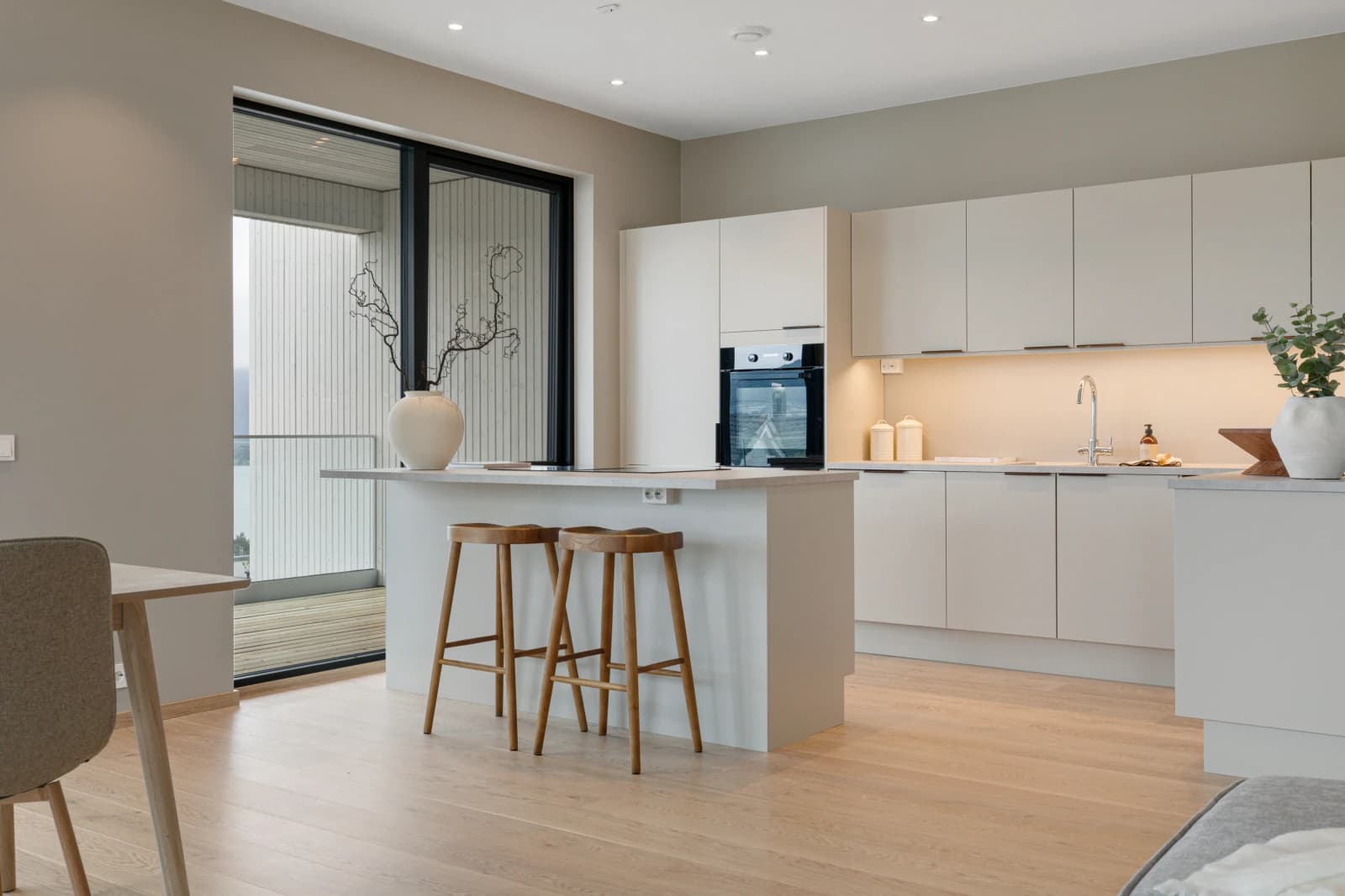 - Malte vegger og tak i valgfrie farger, der soverom og stue i tillegg kan leveres med kontrastvegg.
