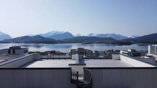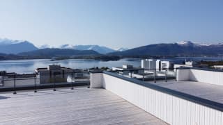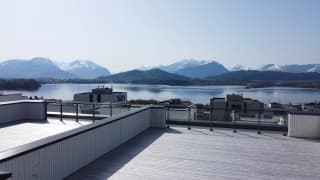 Solrik og romslig veranda med moderne glassrekkverk, i tillegg til stor privat takterrasse på ca. 70 m2 med fantastisk utsikt over Åsefjorden og Sunnmørsalpane. Det er også uteområde/hage med mulighet for markterrasse. Her kan sommeren nytes med plass til alle!