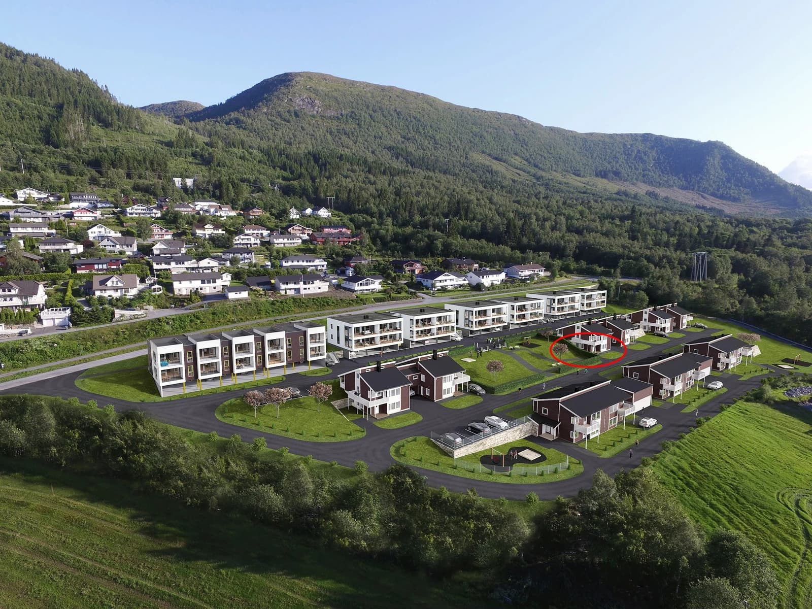 Rystene Panorama ligg flott plassert i eit allereie etablert byggefelt, og har fantastisk panoramautsikt mot fjord, fjell og Ørsta sentrum.
