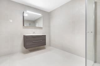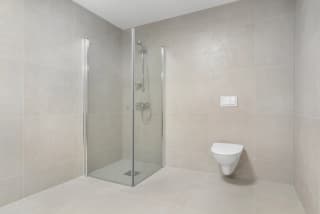 - Bad leverast ferdig flislagt med 60x60 cm flis frå Modena på veggar og golv. Det kan fritt veljast mellom 5 fargevariantar som inngår i flisserien. Dusjhjørne/-dør med profilar i krom og klart glas, mosaikkflis på golv.