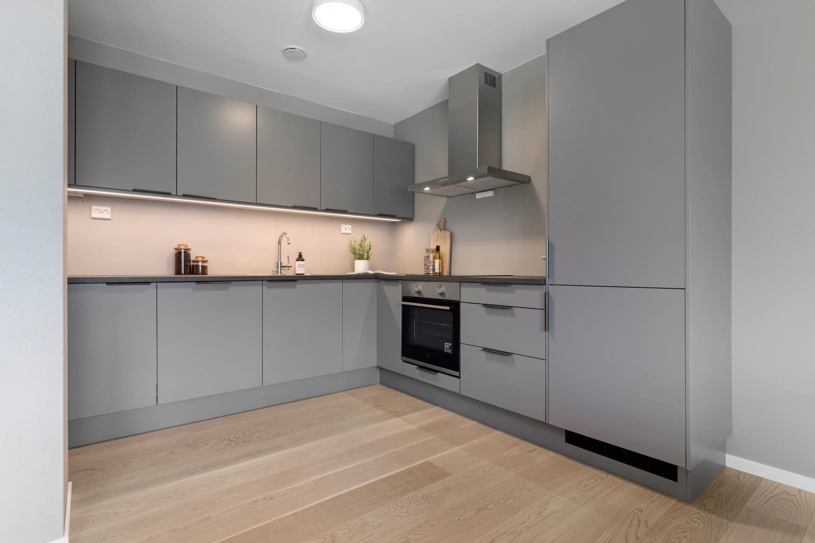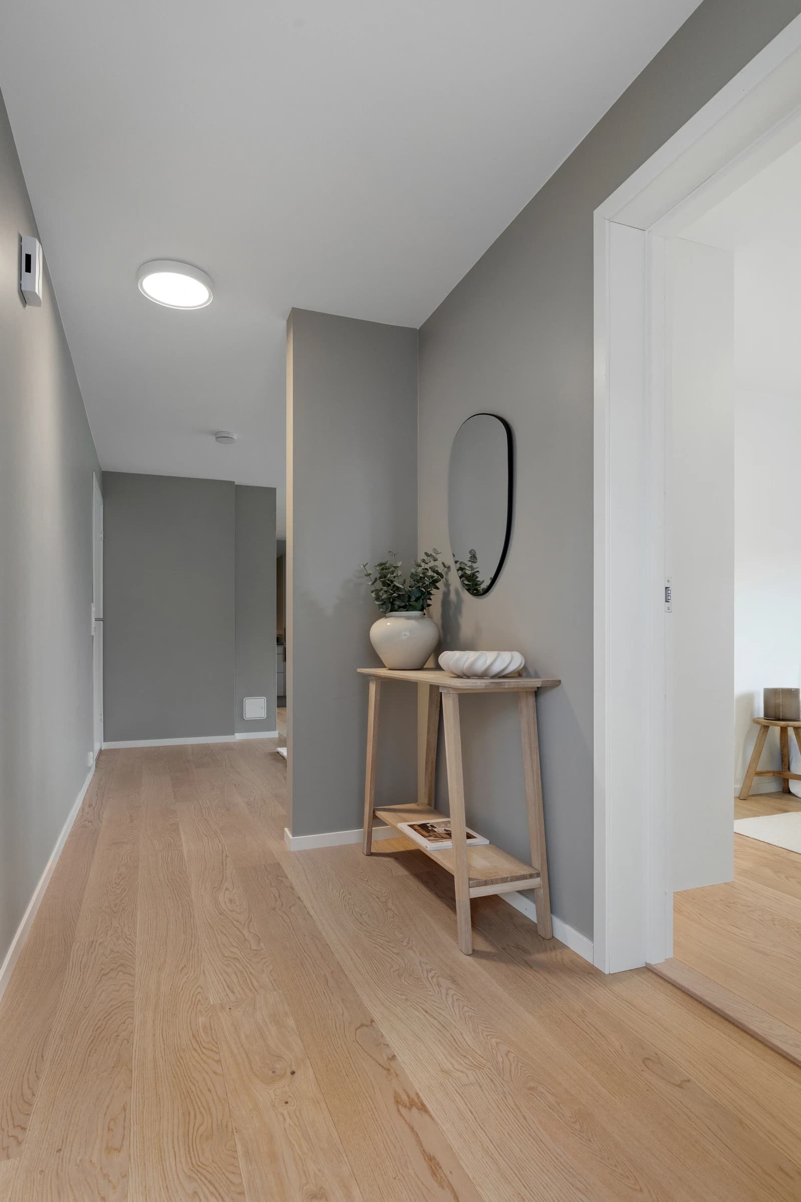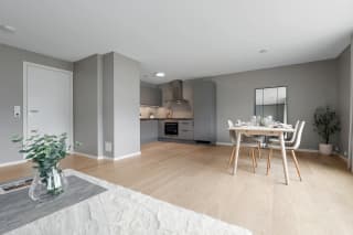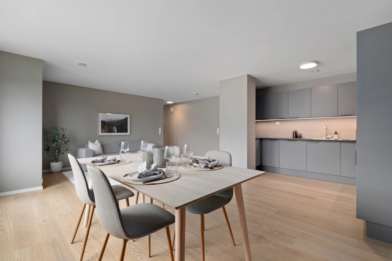 Våre bustadar vert levert med nøkkelferdig standard. Det vil seie at alt av arbeid med legging av parkett, maling og flisarbeid vert utført og er inkludert i prisen for bustaden. Du får då ein innflyttingsklar bustad med ekstra høg standard der du flyttar rett inn i den ferdige bustaden. Vel du ein av våre eksklusive visningsbustadar, kan du i tillegg overta vår møbelpakke etter avtale med seljar.