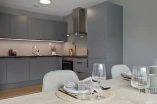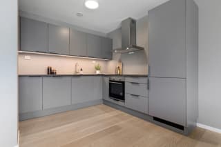 - Eksklusiv kjøkkenløysing frå Sigdal, der frontar kan leverast i 15 valfrie fargevariantar. Kjøkkenet leverast med integrerte kvitevarer (kjøl/frys, induksjonstopp, steikeomn og oppvaskmaskin).