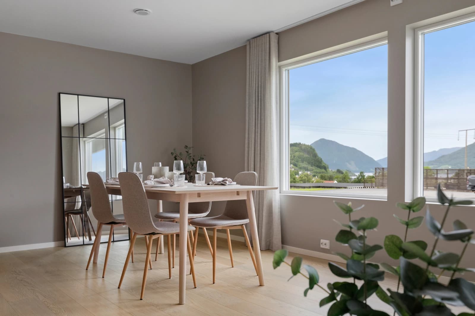 Rystene Panorama ligg flott plassert i eit allereie etablert byggefelt, og har fantastisk panoramautsikt mot fjord, fjell og Ørsta sentrum.