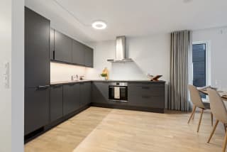 - 1-stavs eikeparkett av høg kvalitet levert på stove, kjøkken og soverom.