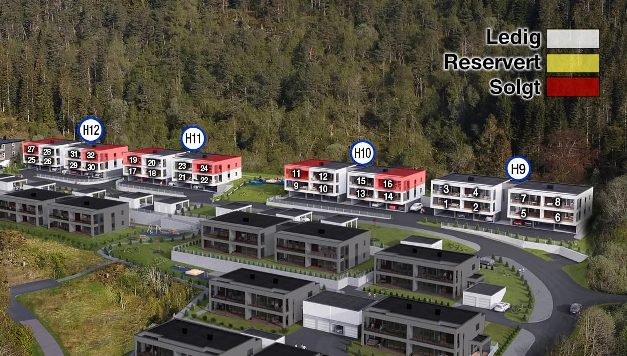 Dette er et moderne leilighetsbygg som inneholder boliger med gode kvaliteter og høy standard. Leilighetene er på ca. 78 – 93 m2, har 2-3 soverom og livsløpsstandard. Boligene har ekstra takhøyde og store vindusflater, som gir et lyst og moderne preg. Fra stuen er det skyvedør ut til egen stor overbygt balkong med glassrekkverk. Boligen har egen parkeringsplass og sportsbod i parkeringsplan under boligene. Herfra går det heis og trapp til overbygt svalgang. På området er det tilgang til gjesteparkering og flotte lekeplasser, med lekeapparat og benker.