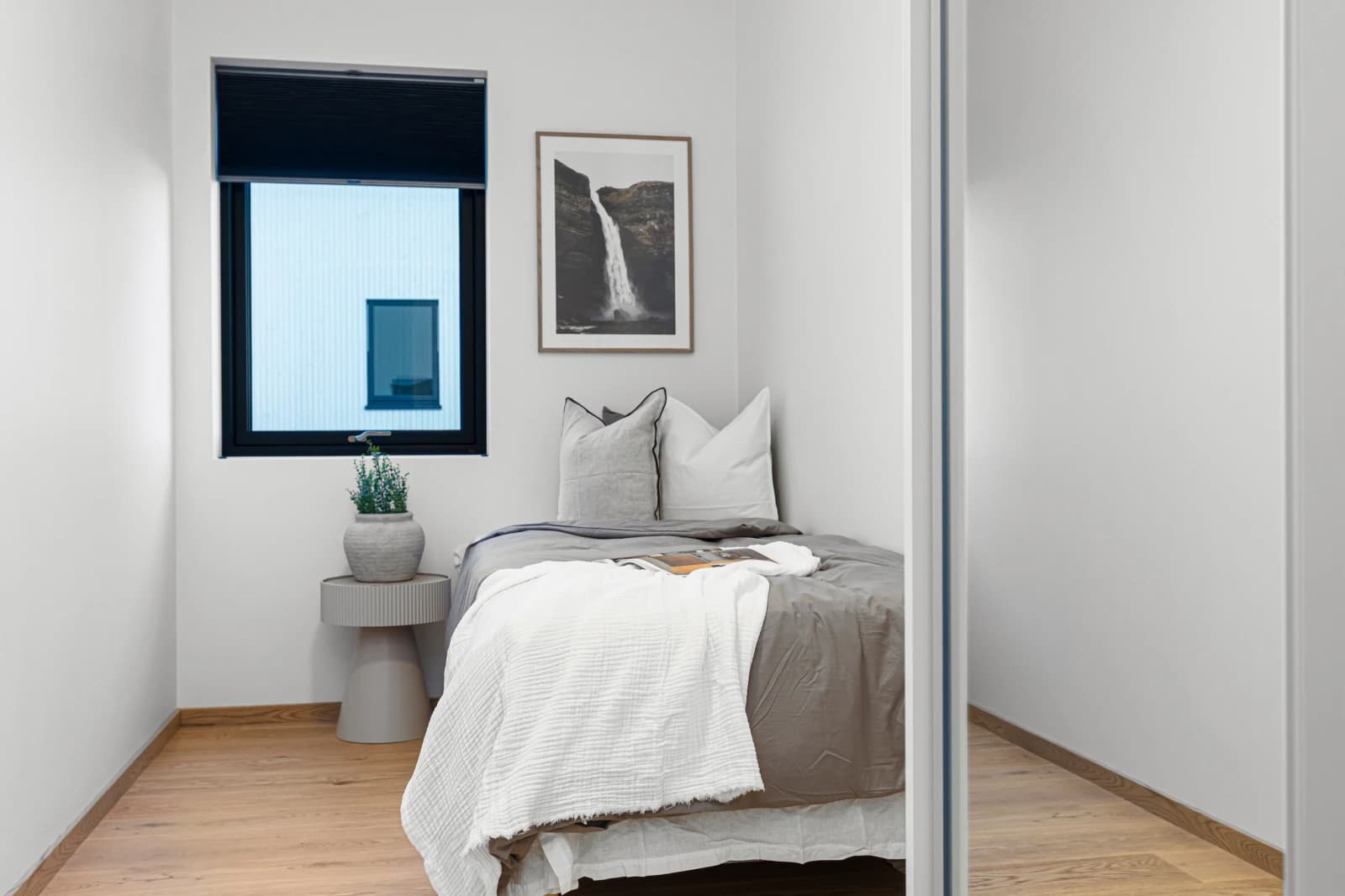 - Malte vegger og tak i valgfrie farger, der soverom og stue i tillegg kan leveres med kontrastvegg.
