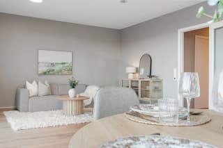 Våre boliger blir levert med nøkkelferdig standard. Det vil si at alt av arbeid med legging av parkett, maling og flisarbeid blir utført og er inkludert i prisen for boligen. Du får da en innflyttingsklar bolig med ekstra høy standard der du flytter rett inn i den ferdige boligen. Velger du en av våre eksklusive visningsboliger, kan du i tillegg overta vår møbelpakke etter avtale med selger.