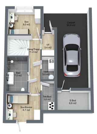 Våre boliger blir levert med nøkkelferdig standard. Det vil si at alt av arbeid med legging av parkett, maling og flisarbeid blir utført og er inkludert i prisen for boligen. Du får da en innflyttingsklar bolig med ekstra høy standard der du flytter rett inn i den ferdige boligen.