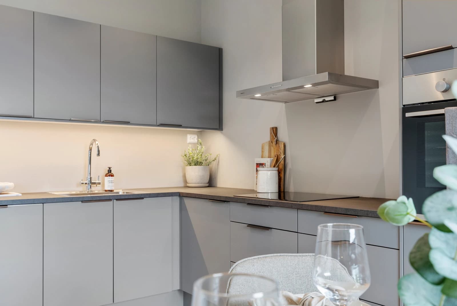 - Eksklusiv kjøkkenløsning fra Sigdal, der fronter kan leveres i 15 valgfrie fargevarianter. Kjøkkenet leveres med integrerte hvitevarer (kjøl/frys, induksjonstopp, stekeovn og oppvaskmaskin).