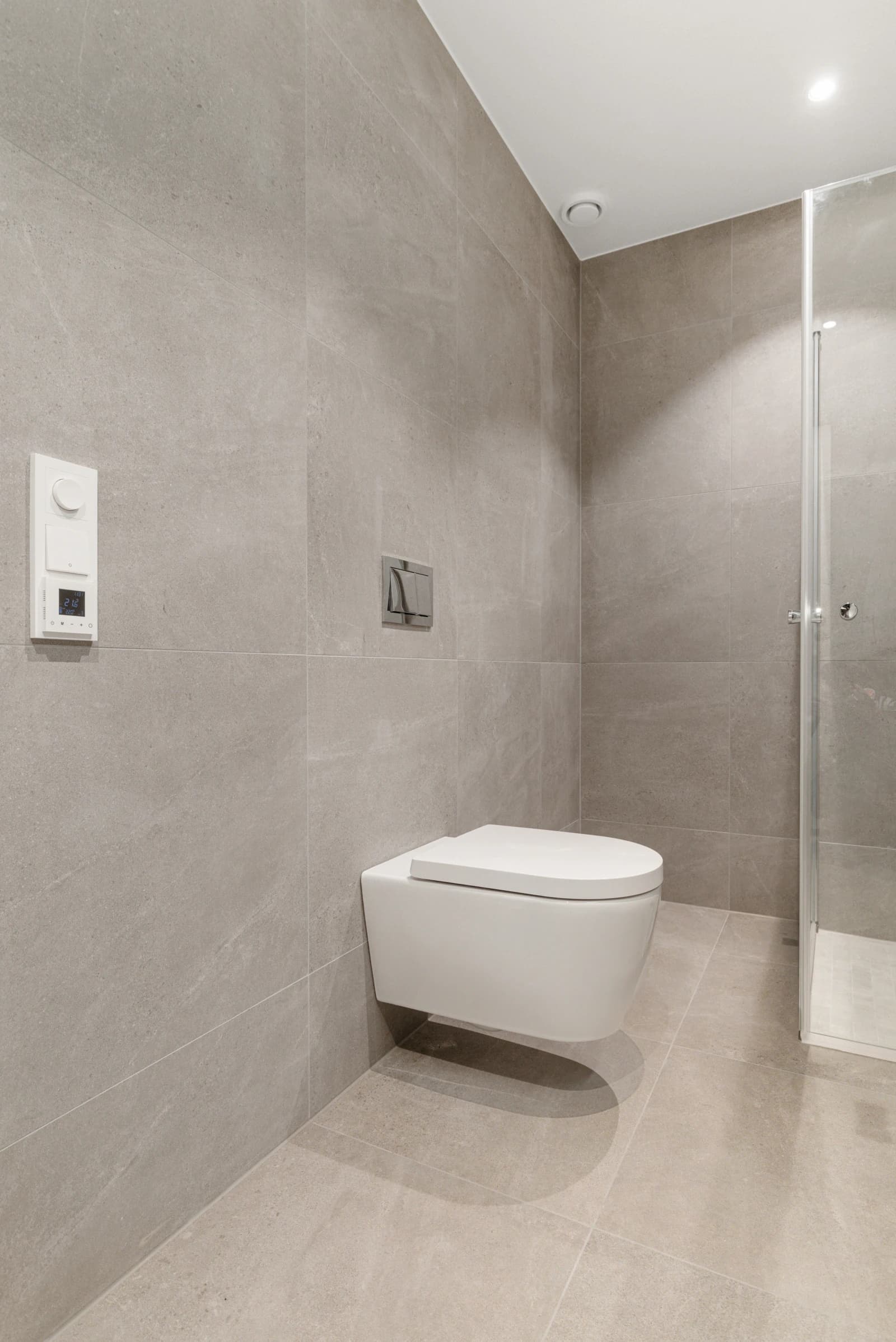 - Bad leveres ferdig flislagt med 60x60 cm flis fra Modena på vegger og gulv. Det kan fritt velges mellom 5 fargevarianter som inngår i flisserien. Dusjhjørne/-dør med profiler i krom og klart glass, mosaikkflis på gulv.