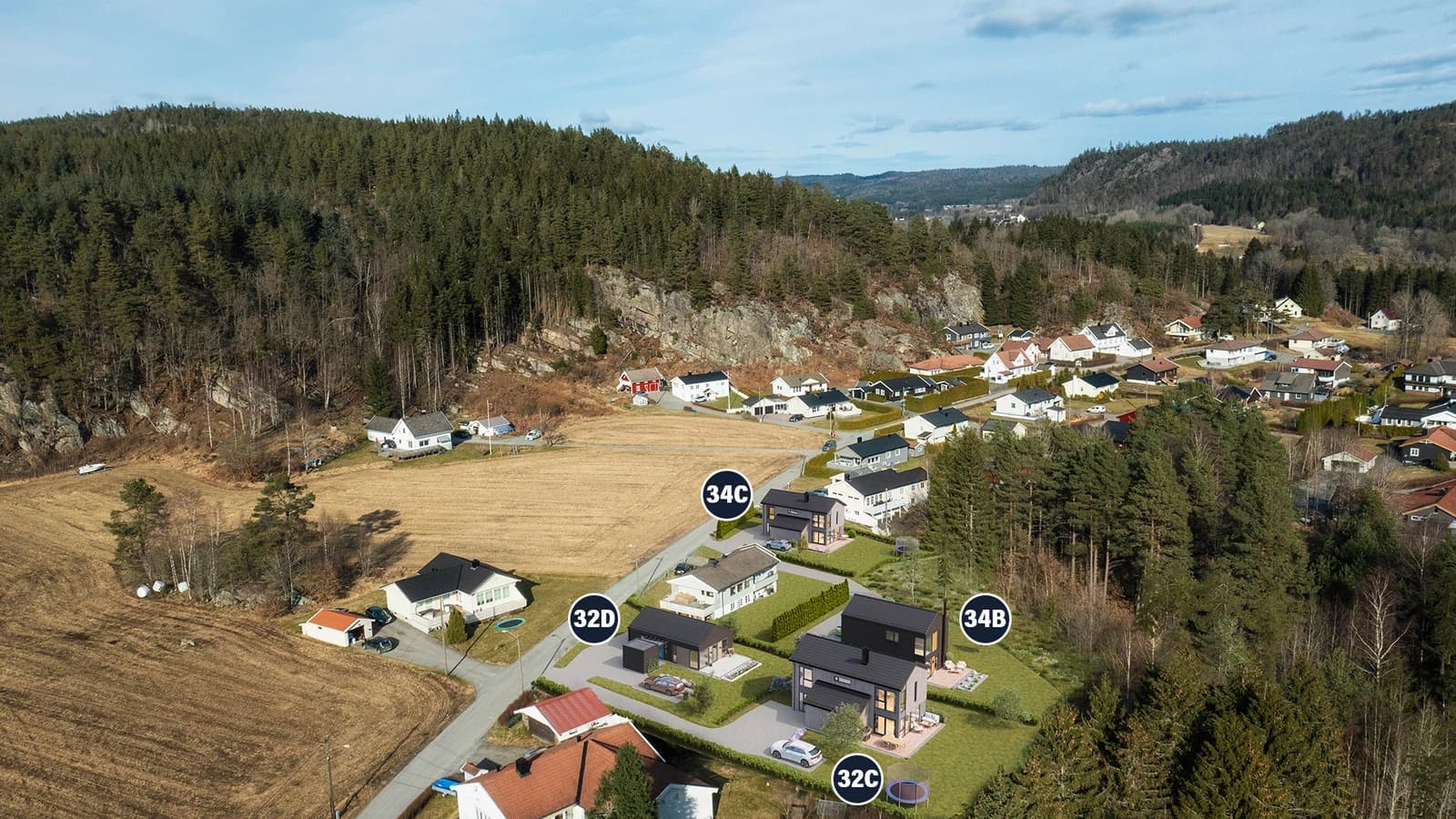 Du kan velge hvilken type bolig du ønsker, tomt 32C koster 300 000,- mer enn de andre.