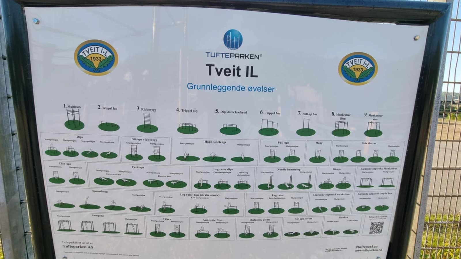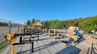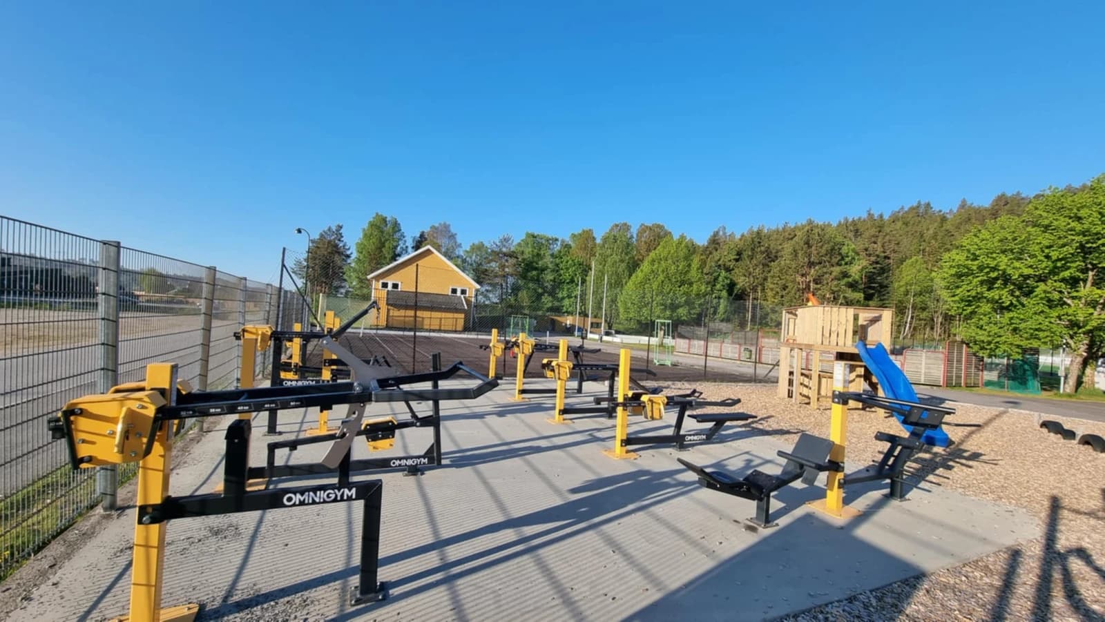 utvendig padlebane (ny under bygging), Omni gymapparater og Jungel gym.