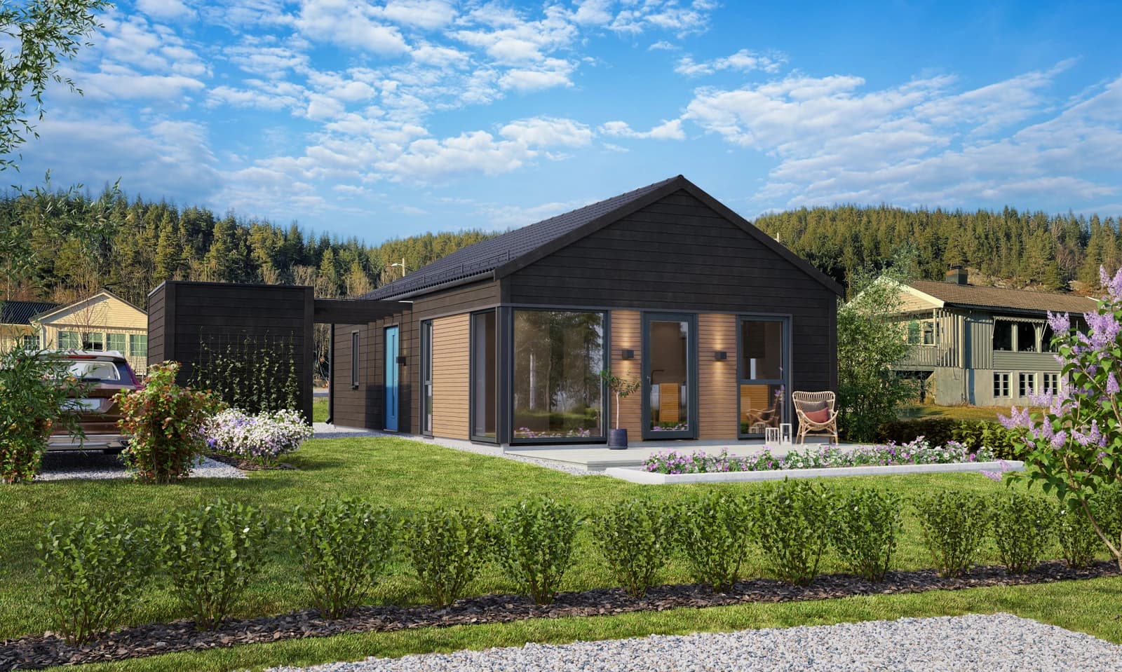 Funksjonelle eneboliger selges i naturskjønne omgivelser til fornuftige priser. Alle oppgitte priser inkl. tomt