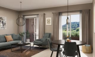 Her bor du fredelig og usjenert – samtidig som du har alt du trenger et kort steinkast unna. Området byr på vakre turstier langs elva, grønne omgivelser, møte- og lekeplasser, og kort vei til kafeer.