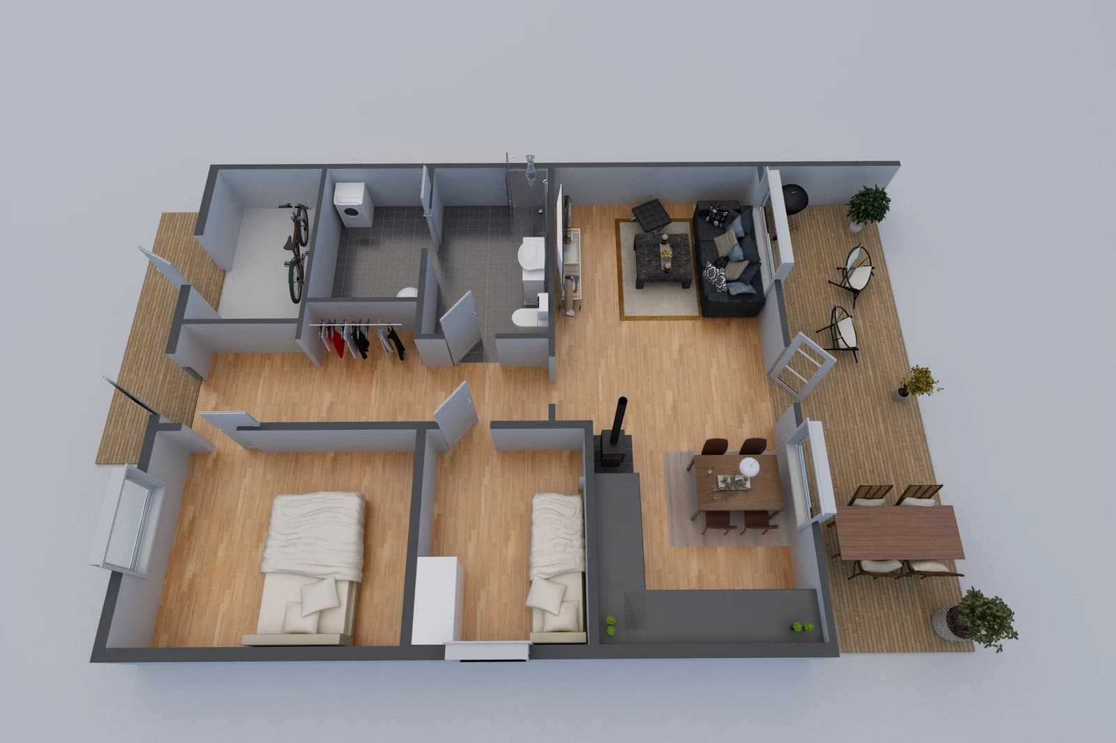 Bildene er en stemnings illustrasjon som viser korleis det ferdige resultatet kan bli. Vi tar forbehold om endringer og avvik. Enkelte av produktene er ikkje inkludert i prisen, men kan settes inn mot tillegg i prisen.