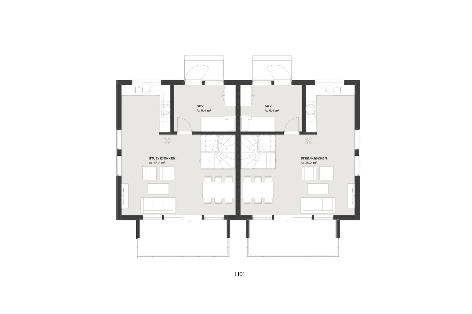 Byggene blir oppført med høy kvalitet både innvendig og utvendig, og det tilrettelegges for hele to parkeringsplasser per enhet.