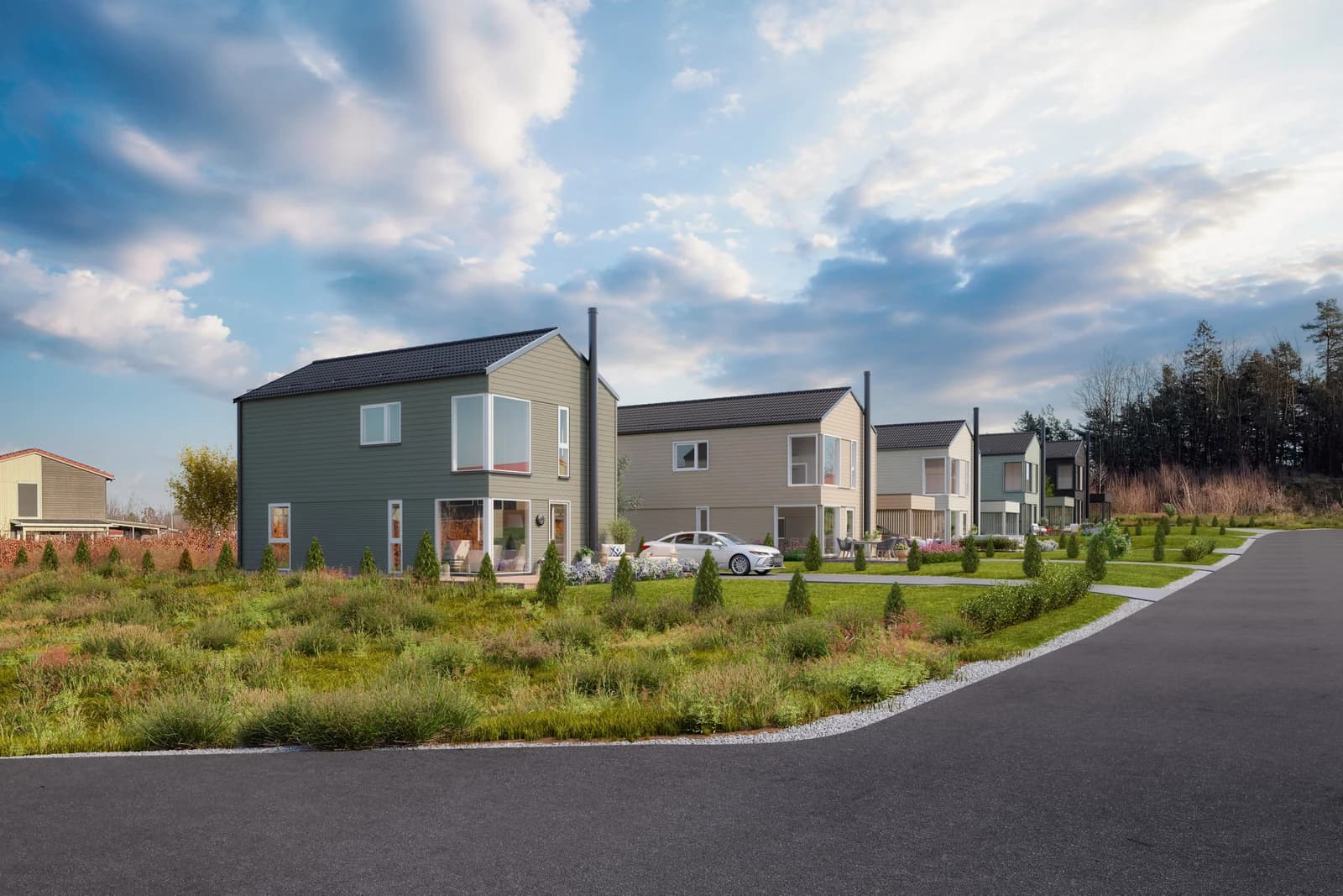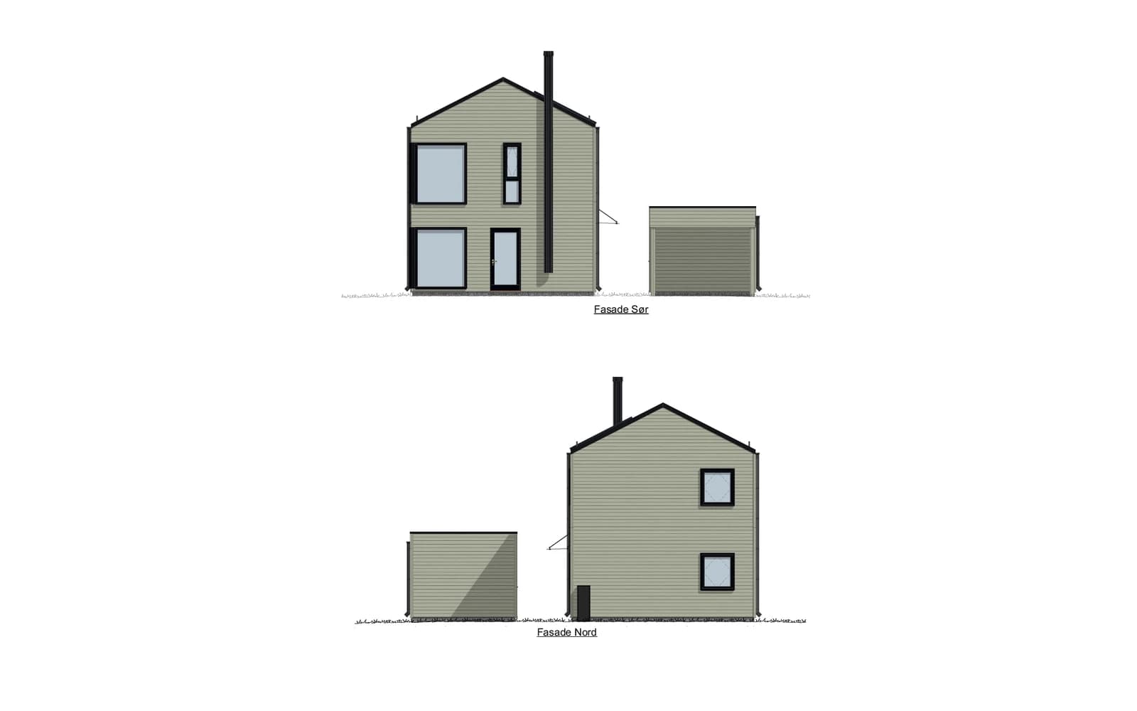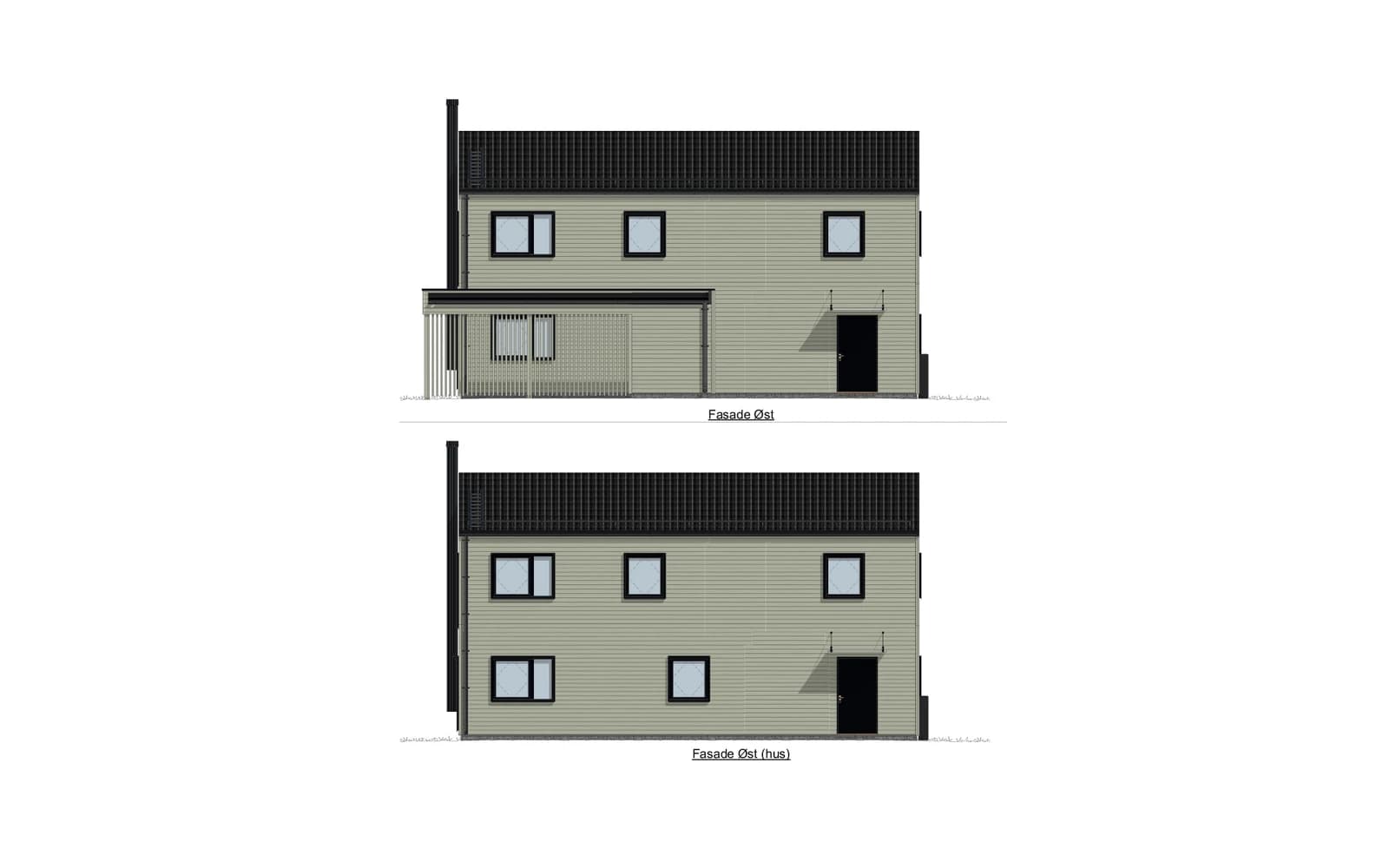 - Utvendig kledning leveres fabrikkmalt, grunnet med mellomstrøk. Det er plukket ut moderne og tilpassede farger.
