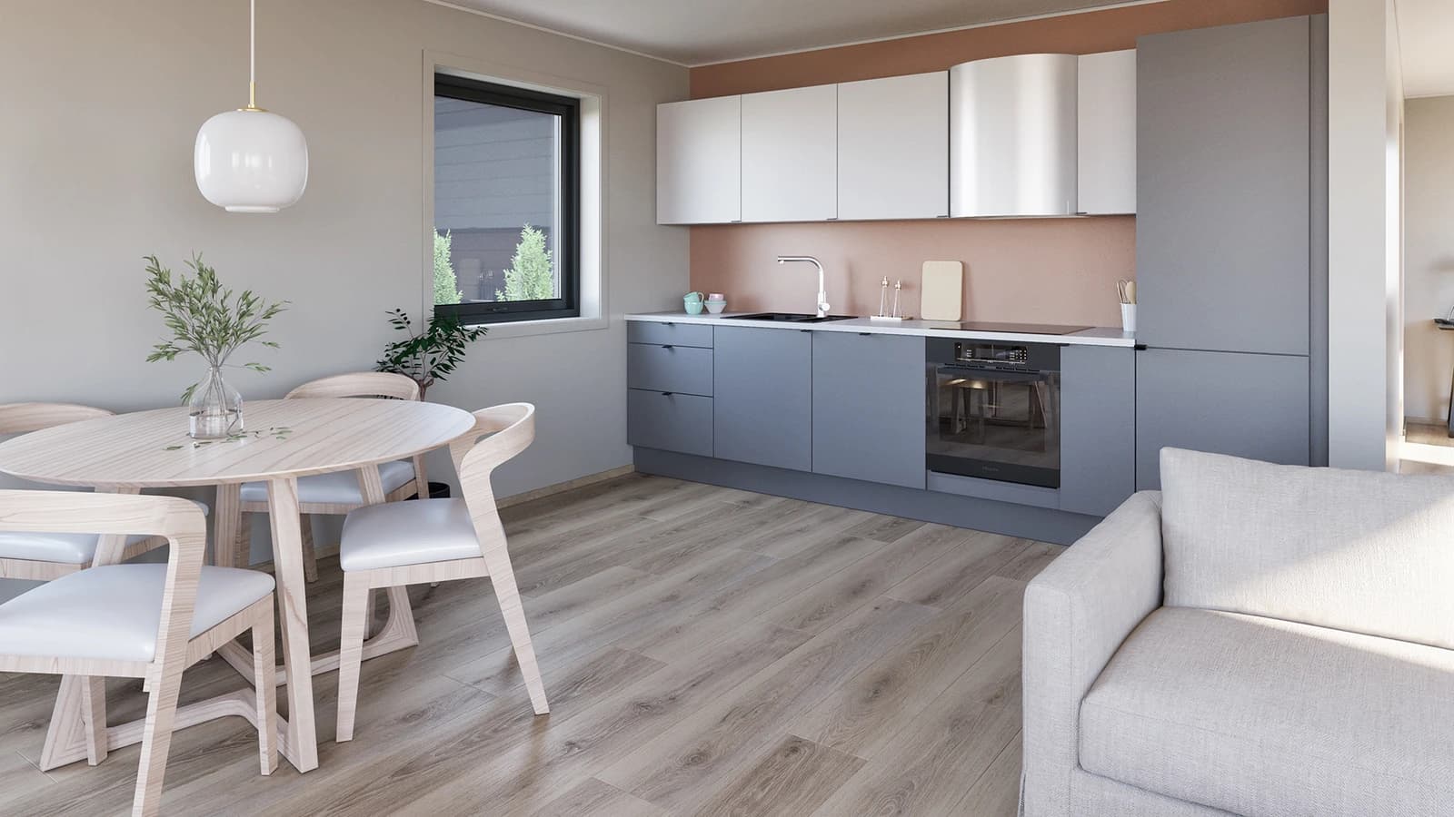 - Kjøkkeninnredning Aubo med integrerte hvitevarer.