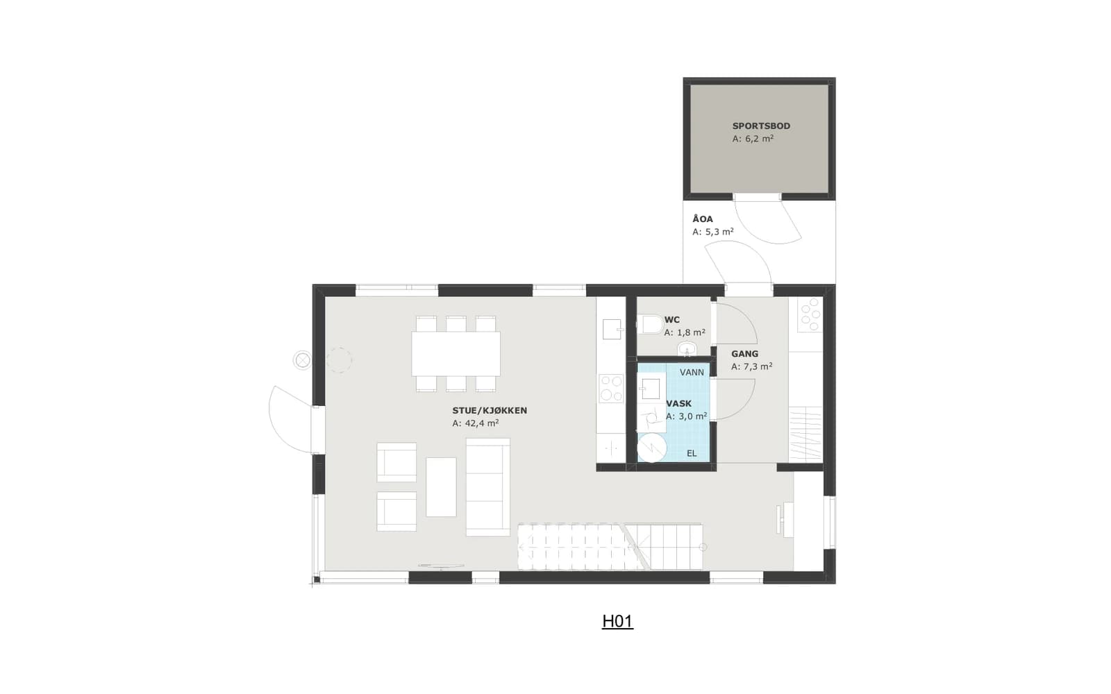 - Leveres med betonggulv